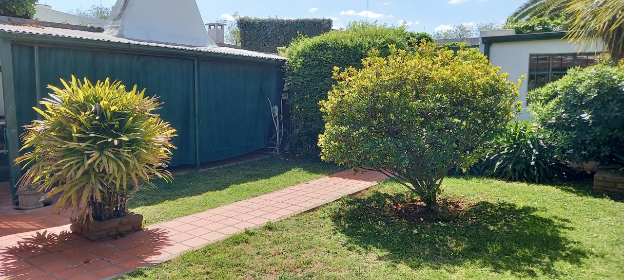EL EXTERIOR CUENTA CON UN PATIO CON VERDE Y UNA PARRILLA TECHADA.