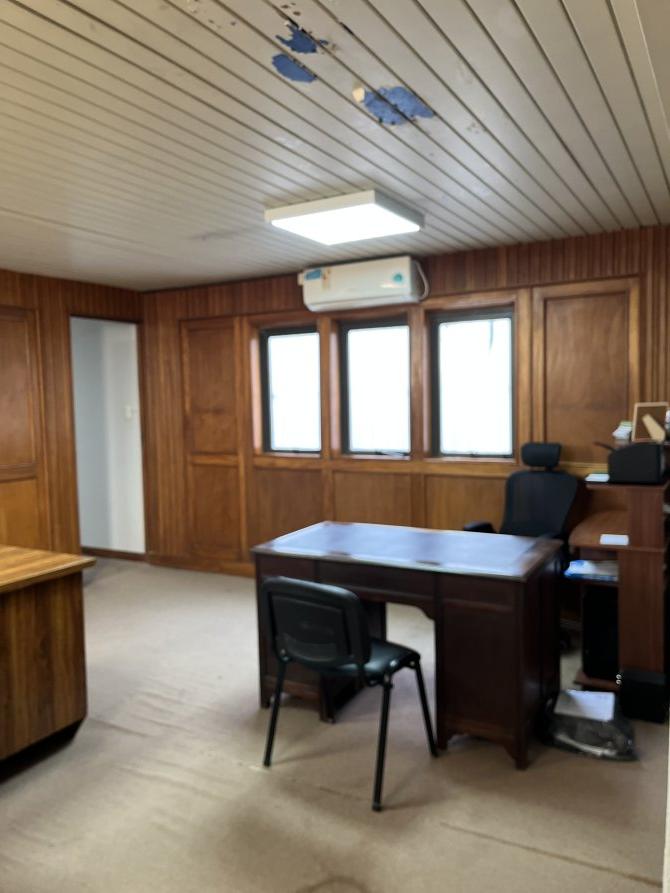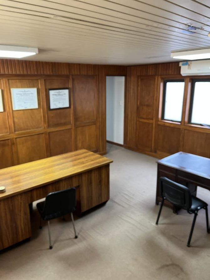 • Oficina principal revestida en madera, ideal para uso gerencial o reuniones.