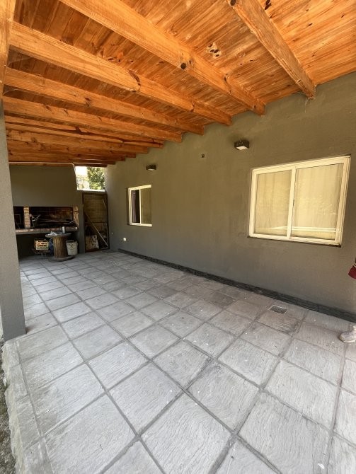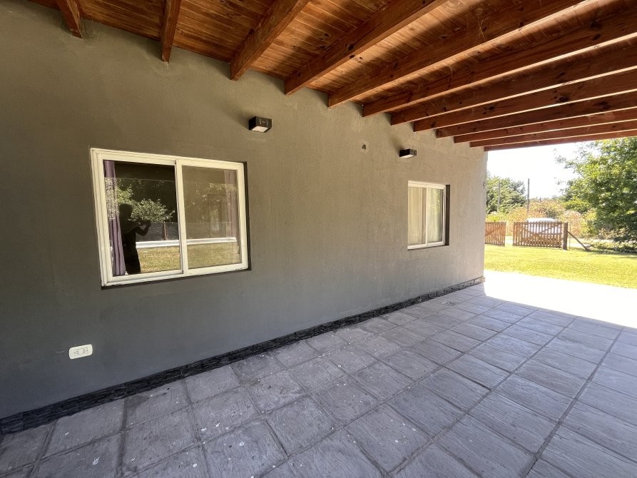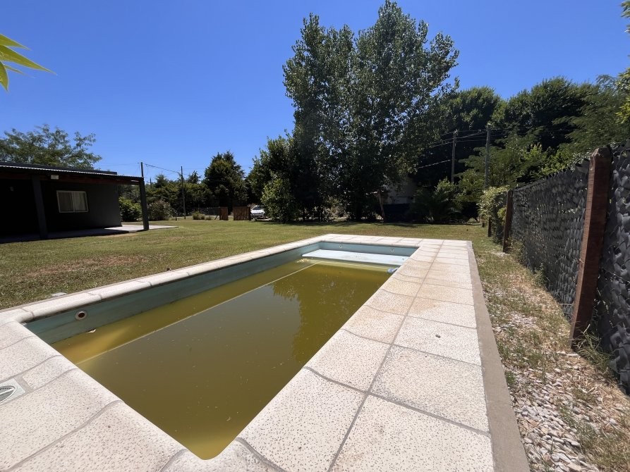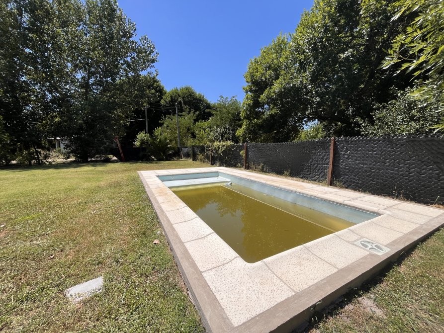 En el exterior dispone de una galería con parrilla y una pileta de fibra, con vereda perimetral de material y baldosas térmicas, además de su sistema de filtrado completo, lista para usar.