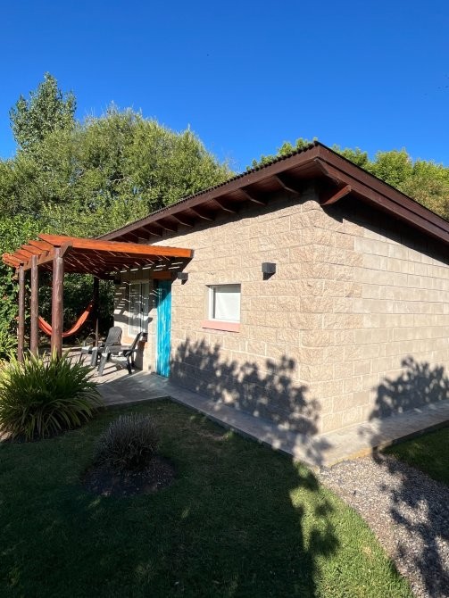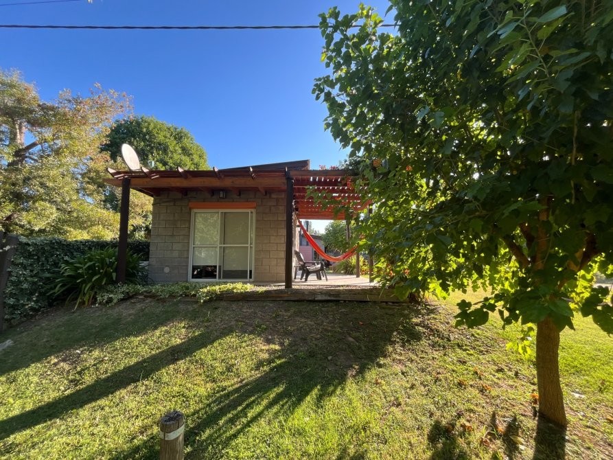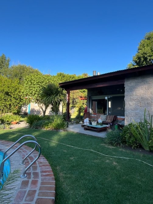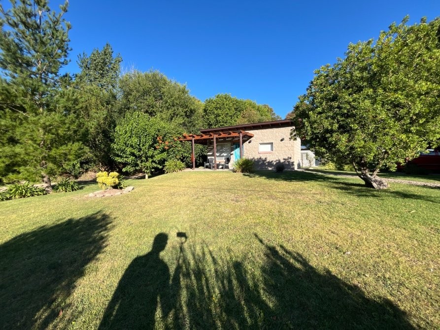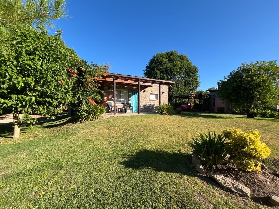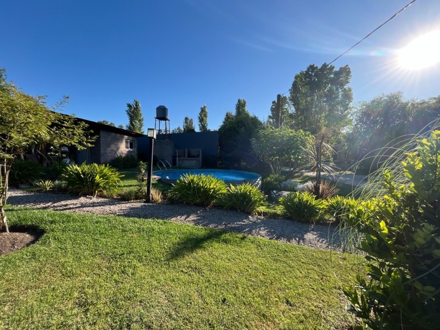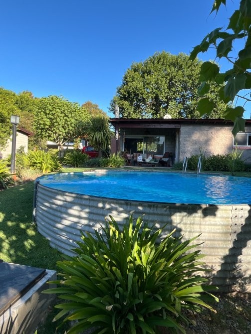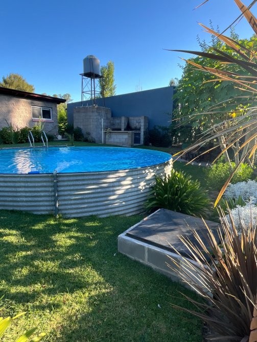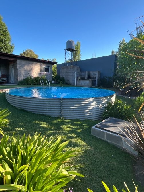 El predio cuenta con un tanque australiano utilizado como piscina, sector de parrilla, estar exterior y baño externo, pensado para el uso cómodo de huéspedes.